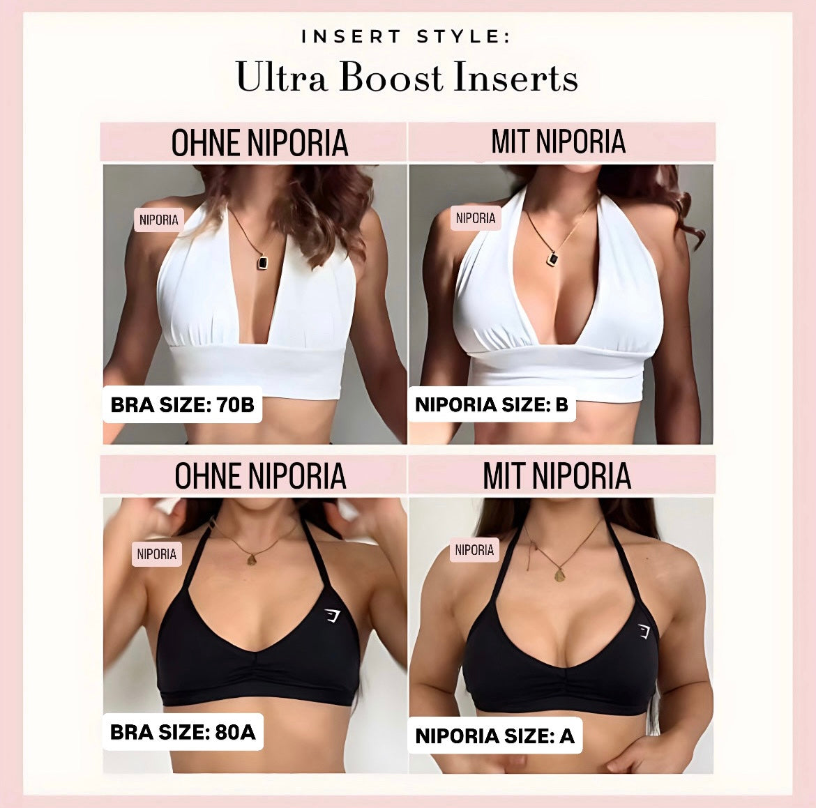 Wähle deine deutsche BH-Größe (Unterbrustweite & Cup). Wir zeigen dir direkt, welche Niporia-Größe passt.